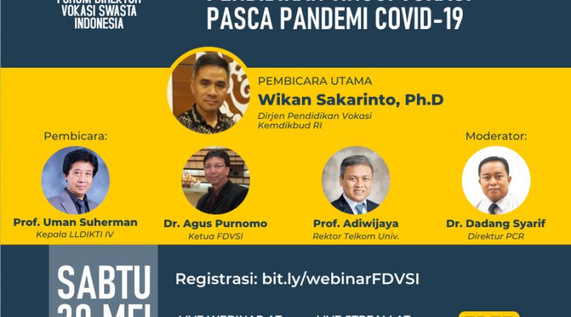 sekitarjambi.com – Kota Jambi, Forum Direktur Vokasi Swasta Indonesia menggelar webinar bertajuk “Arah, Strategi, dan Kebijakan Pendidikan Tinggi Vokasi, Pasca