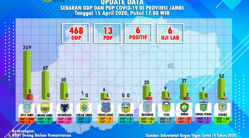 sekitarjambi.com – Jubir Pemerintah soal penanganan covid-19, Achmad Yurianto, mengumumkan ada 4 tambahan pasien covid-19 di Provinsi Jambi, Jumat (24/4/2020).