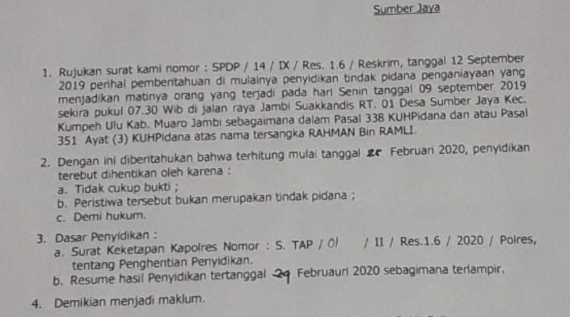 sekitarjambi.com – Kasus dihentikan, Seorang pria yang diduga mengalami gangguan Jiwa atas nama Rahman Bin Ramli (25) warga Desa Sumber