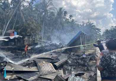 sekitarjambi.com – Api menghanguskan bedeng empat pintu di Desa Teluk Kulbi, Kecamatan Betara, Kabupaten Tanjung Jabung Barat, Provinsi Jambi, dengan