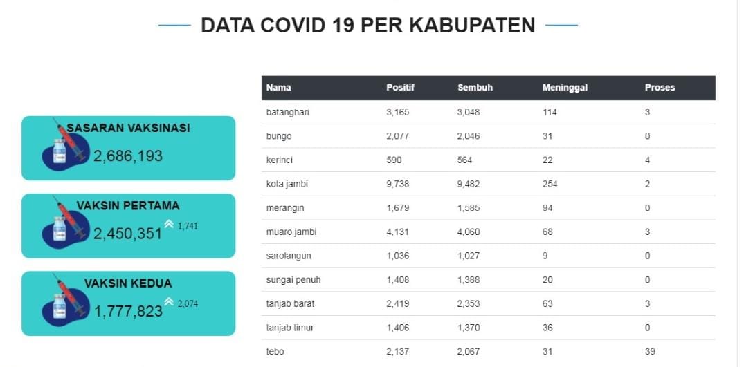 Kota Jambi masuk dalam catatan bersama empat daerah lain di Provinsi Jambi yang menerapkan PPKM naik level 2. Empat daerah tersebut yakni Kabupaten Kerinci, Kabupaten Merangin, Kabupaten Tebo, dan Kabupaten Tanjung Jabung Timur.
