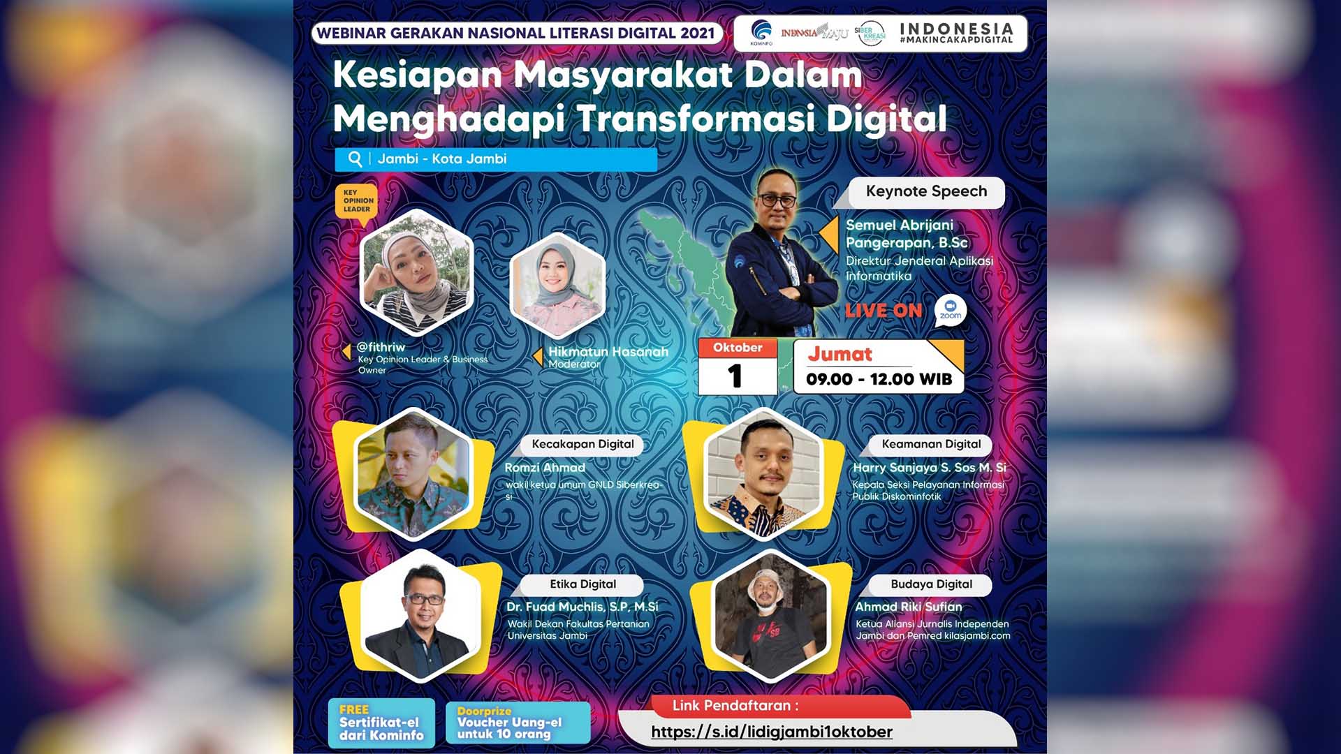“Kesiapan Masyarakat Dalam Menghadapi Transformasi Digital” Warnai Topik Webinar Literasi Digital Kota Jambi