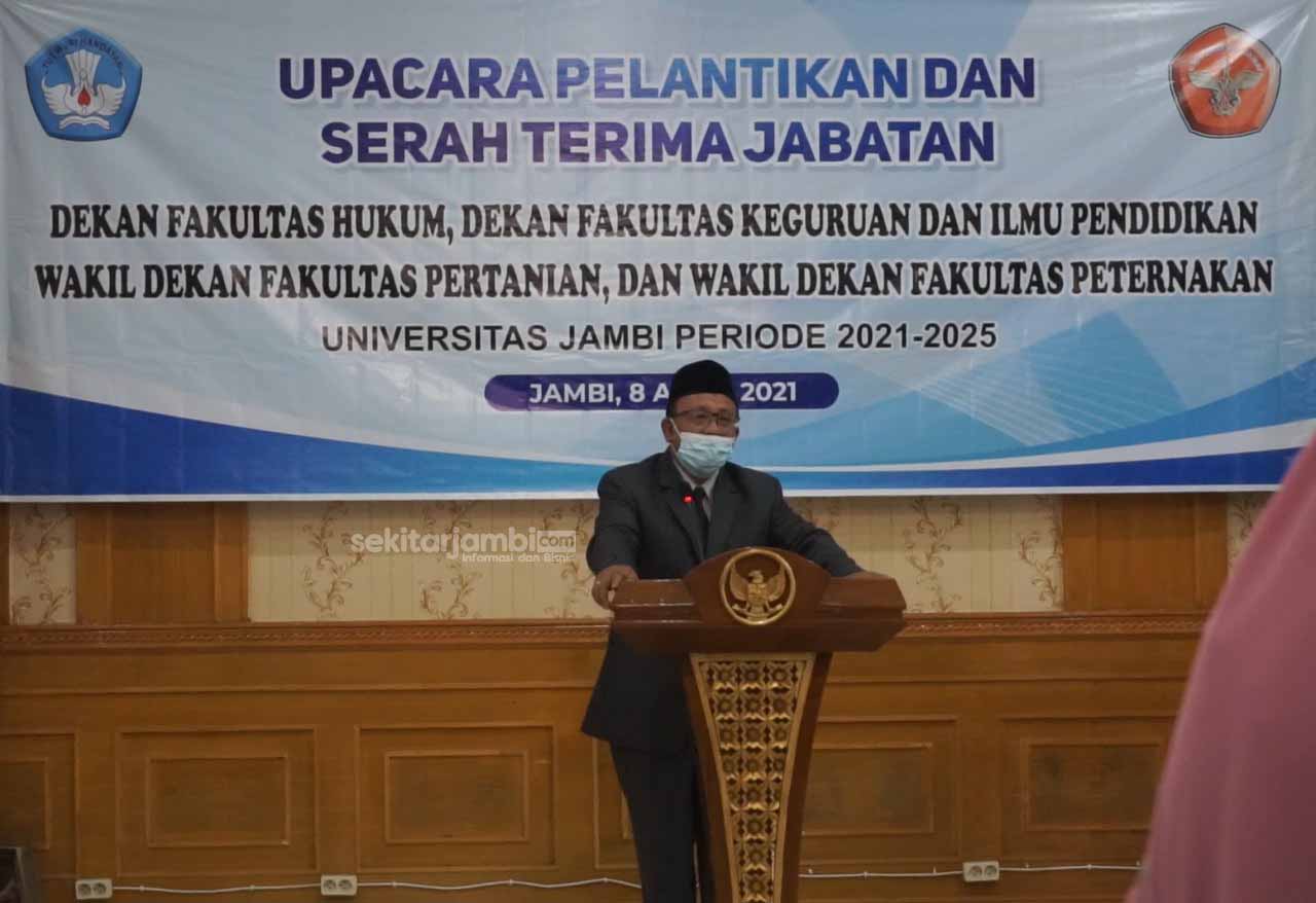 sekitarjambi.com – Muaro Jambi, Kamis 8 April 2021, Universitas Jambi menggelar upacara pelantikan serah terima jabatan Dekan Fakultas Hukum dan Dekan Fakultas Keguruan Ilmu Pendidikan, serta Wakil Dekan Fakultas Pertanian dan Wakil Dekan Fakultas Peternakan. Serah terima jabatan ini berlangsung di Ruang Senat Universitas Jambi.