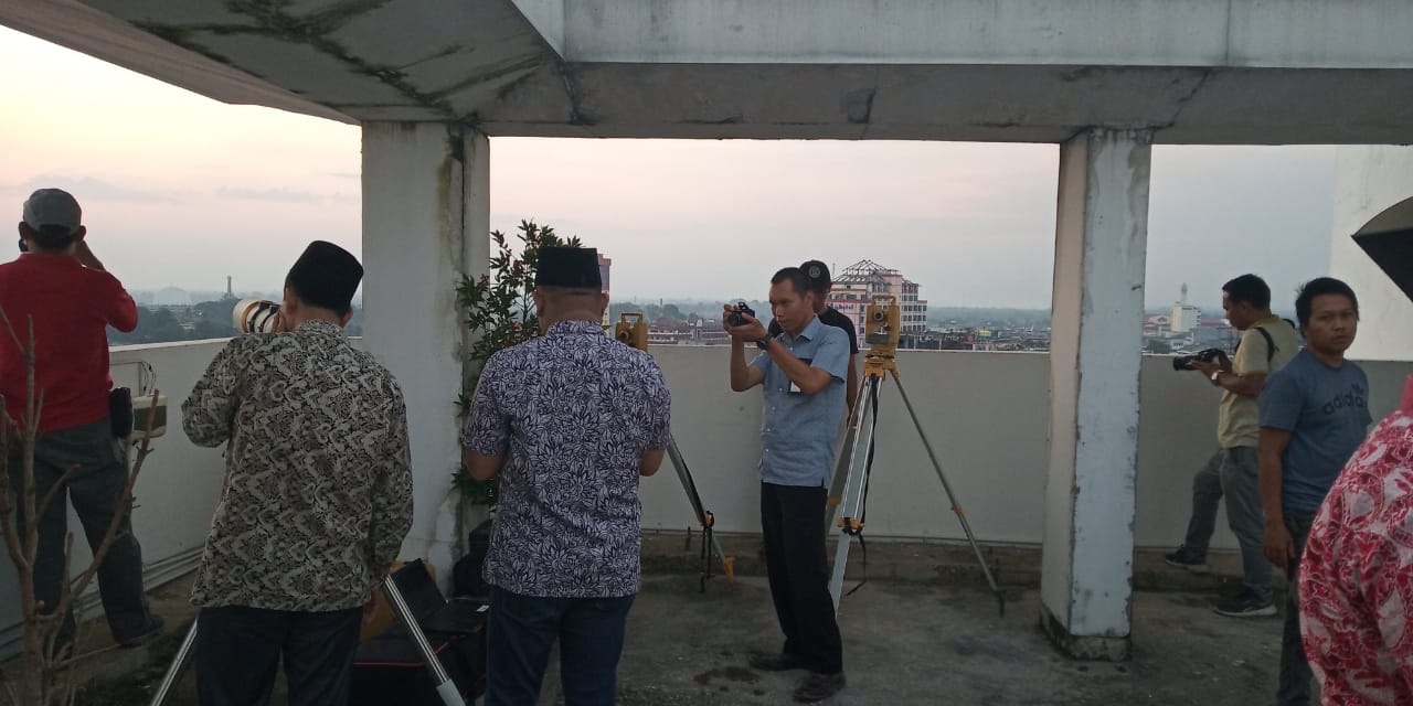 sekitarjambi.com – Kota Jambi_Dalam rangka menentukan hari raya Idul Adha 1440 Hijriah, Kantor Wilayah Kementerian Agama Provinsi Jambi melalui Tim Hisab Rukyat, melakukan pengamatan hilal awal Zulhijah. Pengamatan untuk menentukan awal Zulhijah 1440 Hijriah dilakukan, di puncak Hotel Odua Weston, Kota Jambi sekira pukul 17.00 WIB, Kamis (1/8/2019).